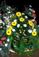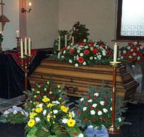Nimis Sarg in der Aussegnungshalle. Und unser Kranz direkt davor. |