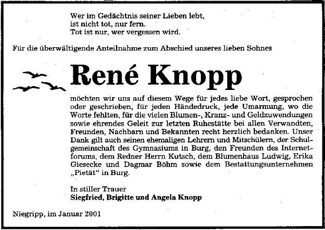 Als er am 06.01.2001 starb, war er gerade 22 Jahre alt. Wir wussten zwar, dass er im Krankenhaus war, aber die meisten von uns ahnten nicht, dass er ernstlich in Gefahr war. Dark Alice wollte sich in der folgenden Woche mit ihm in Magdeburg treffen.